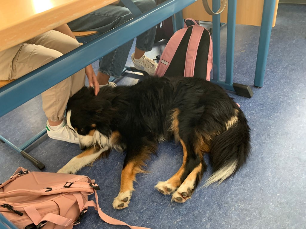 Möchtest Du in der Mittagspause einfach mal schmusen und entspannen mit Louie, dem Schulhund? Dabei kannst du in gemütlicher Atmosphäre erzählen, was Dich gerade bewegt, auch mal den einen oder anderen Trick mit Louie ausprobieren oder vielleicht eine kleine Runde mit uns beiden spazieren gehen und draußen einen Ball für Louie werfen? Dann bist Du hier richtig!