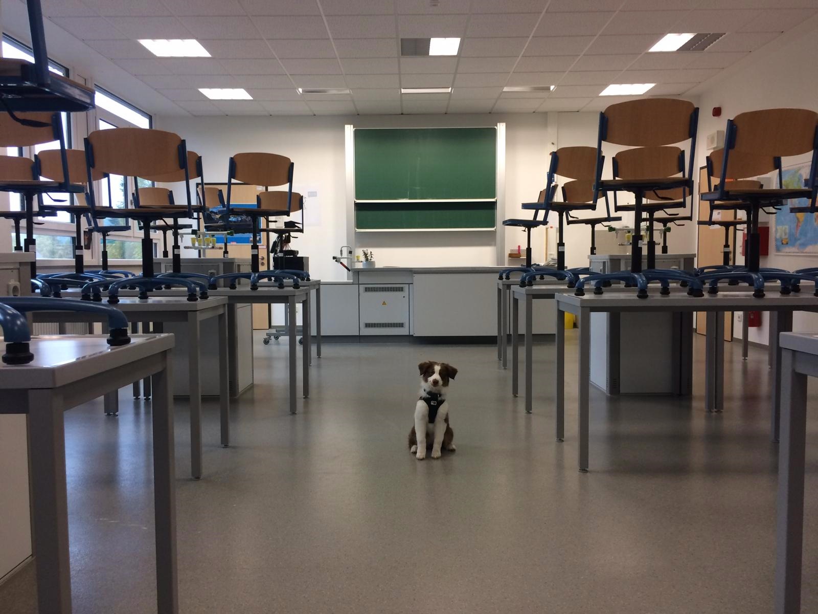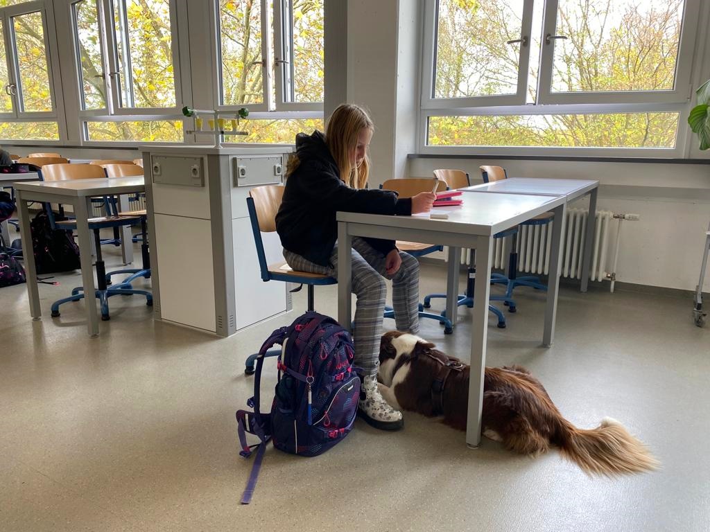 An Konferenzen hat Wilma schon als Junghund teilgenommen. Seit dem Schuljahr 2022/23 ist Wilma auch Hauptbestandteil unserer Hunde AG am Gymnasium Vohwinkel.